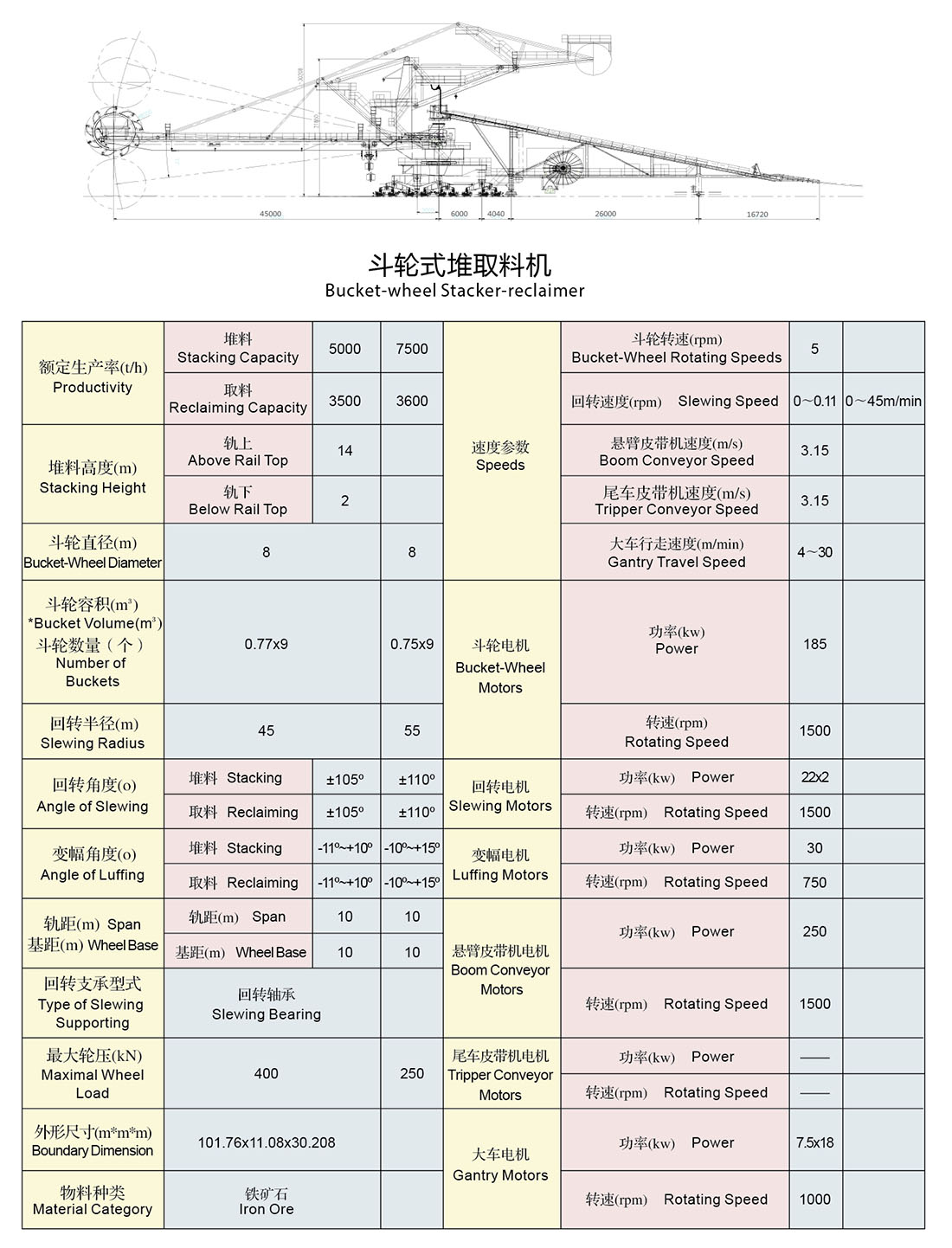 斗輪堆取料機,是大宗散狀物料連續(xù)裝卸的高效設備,廣泛應用于港口、碼頭、冶金、水泥、鋼鐵、焦化、儲煤廠、發(fā)電廠等散料(礦石、煤、焦炭、砂石)存儲料場的堆取作業(yè)