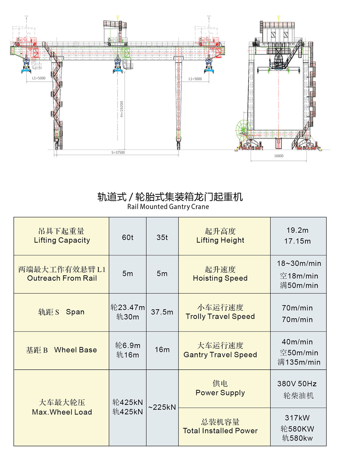 軌道式集裝箱龍門起重機(jī),是集裝箱碼頭和中轉(zhuǎn)站貨場(chǎng)進(jìn)行裝卸、搬運(yùn)和堆碼集裝箱的專用機(jī)械。機(jī)構(gòu)類似于輪胎式場(chǎng)橋。只是在專門鋪設(shè)的鋼軌上行走??砂礉L裝發(fā)運(yùn)的方式向客戶提供所需的軌道式集裝箱門龍門起重機(jī)。