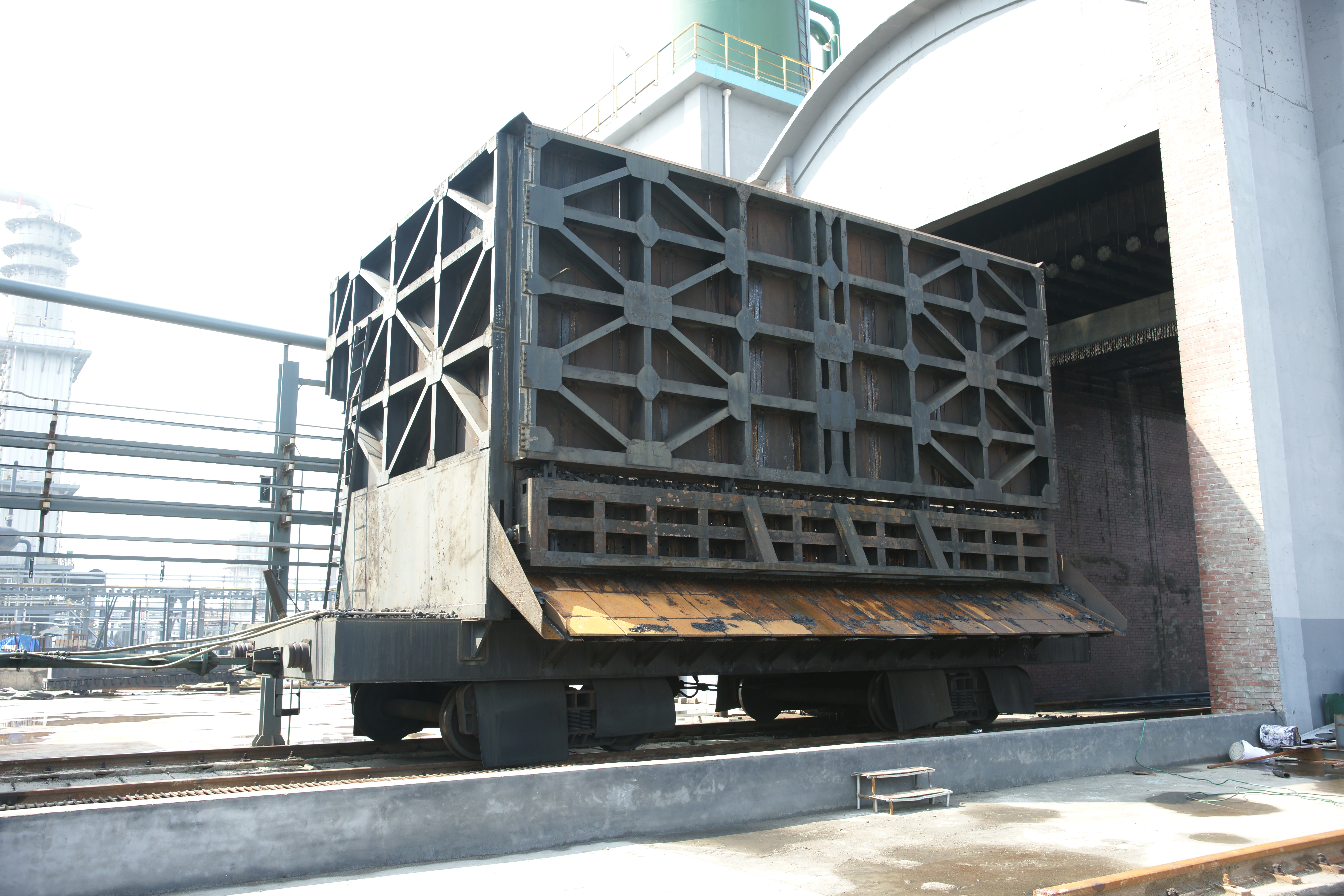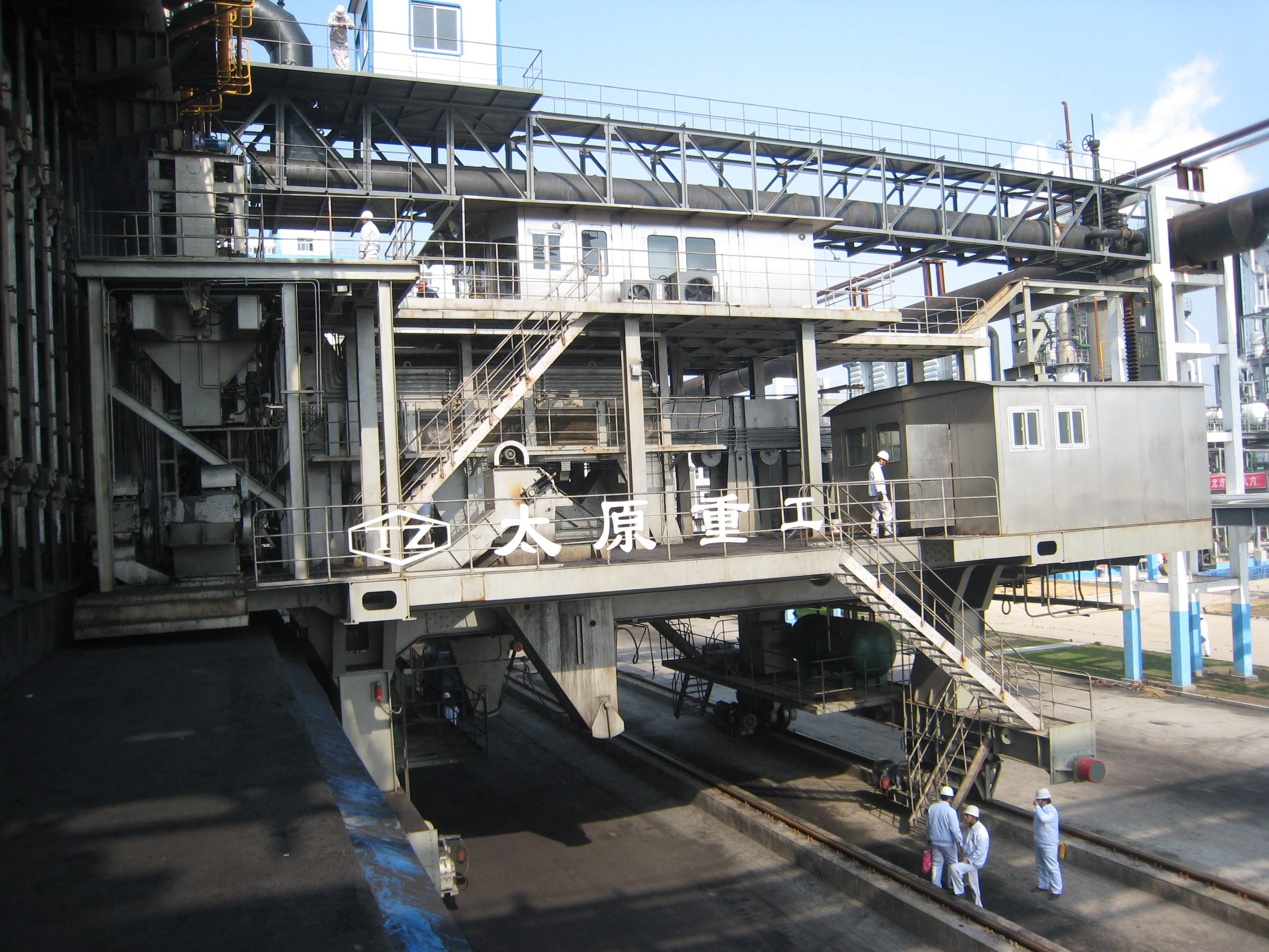 搗固型焦?fàn)t機(jī)械設(shè)備包含煉焦流程的全套機(jī)械設(shè)備:給料機(jī)完成煤粉由煤塔向裝煤車的轉(zhuǎn)運(yùn);搗固機(jī)將松散煤粉壓實(shí)形成煤餅;裝煤車接收煤餅并將其輸送至炭化室進(jìn)行煉焦;推焦車將焦炭由炭化室推送至熄焦車/焦罐車;攔焦車完成炭化室與熄焦車/焦罐車的連通;電機(jī)車是熄焦車/焦罐車的牽引設(shè)備,完成焦炭由煉焦?fàn)t區(qū)到熄焦塔/干熄焦區(qū)的轉(zhuǎn)運(yùn);熄焦車接收熾熱焦炭,并在煤塔下完成濕熄焦過(guò)程;焦罐車接收焦炭后輸送至干熄焦區(qū)域進(jìn)行干熄焦區(qū)域進(jìn)行干熄焦工藝;導(dǎo)煙車負(fù)責(zé)收集與處理裝煤推焦過(guò)程中產(chǎn)生的煙塵;SCP機(jī)集搗固機(jī)、給料機(jī)、裝煤車、推焦車于一體,可實(shí)現(xiàn)移動(dòng)搗固,提高生產(chǎn)效率。