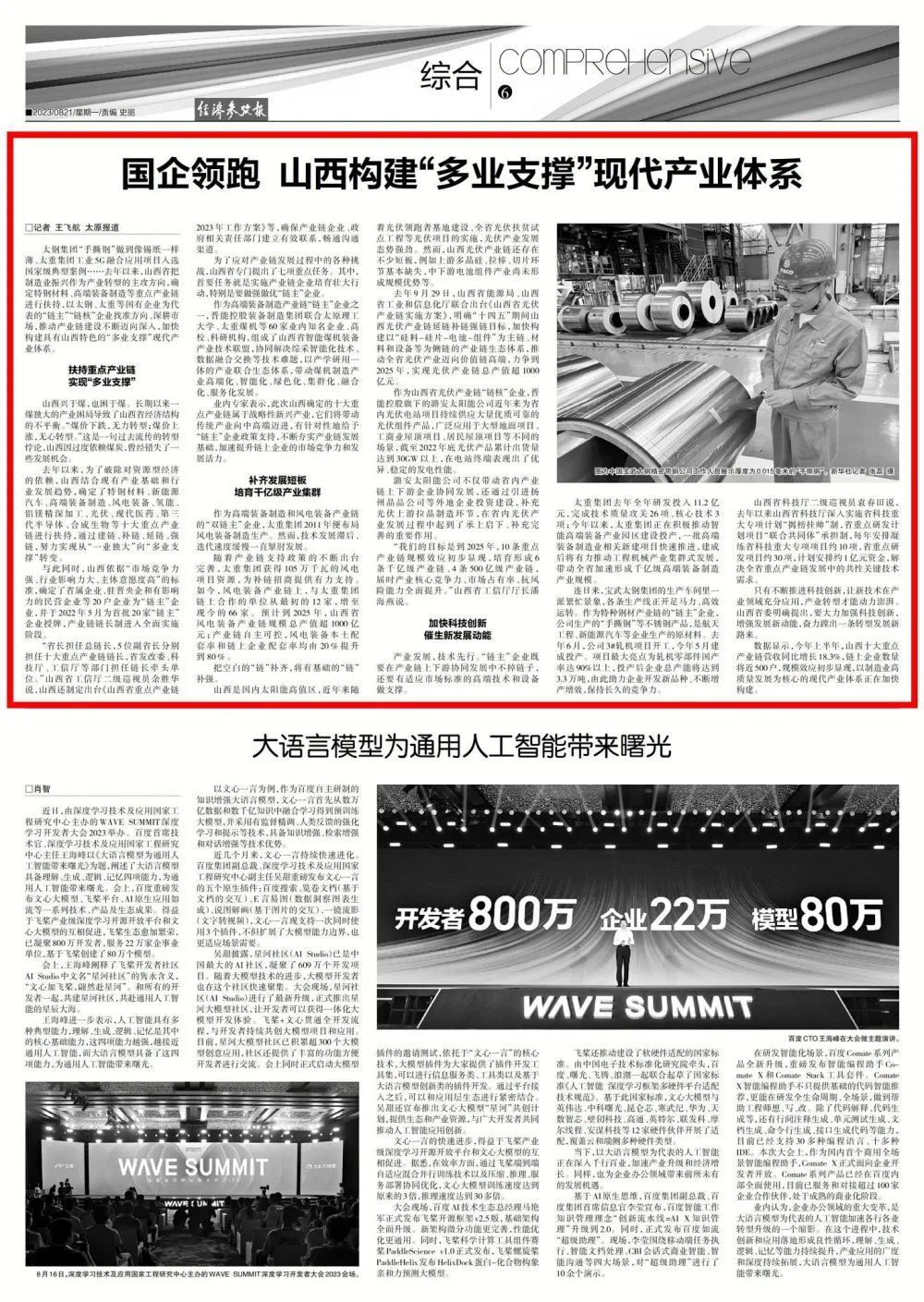 8月21日,新華社主管主辦的《經(jīng)濟參考報》刊發(fā)《國企領(lǐng)跑 山西構(gòu)建“多業(yè)支撐”現(xiàn)代產(chǎn)業(yè)體系》文章,深入報道太重轉(zhuǎn)型發(fā)展。太重集團作為我省唯一的“雙鏈主”企業(yè),不斷提升公司在完善產(chǎn)業(yè)鏈、優(yōu)化供應(yīng)鏈、提升價值鏈中的引領(lǐng)作用,推動鏈上企業(yè)高質(zhì)量發(fā)展。同時,公司高度重視科技創(chuàng)新工作,以全國重點實驗室為依托,在突破關(guān)鍵核心技術(shù)、促進產(chǎn)業(yè)轉(zhuǎn)型升級的最前沿取得顯著成績,為加快構(gòu)建具有山西特色的“多業(yè)支撐”現(xiàn)代產(chǎn)業(yè)體系貢獻太重力量。
