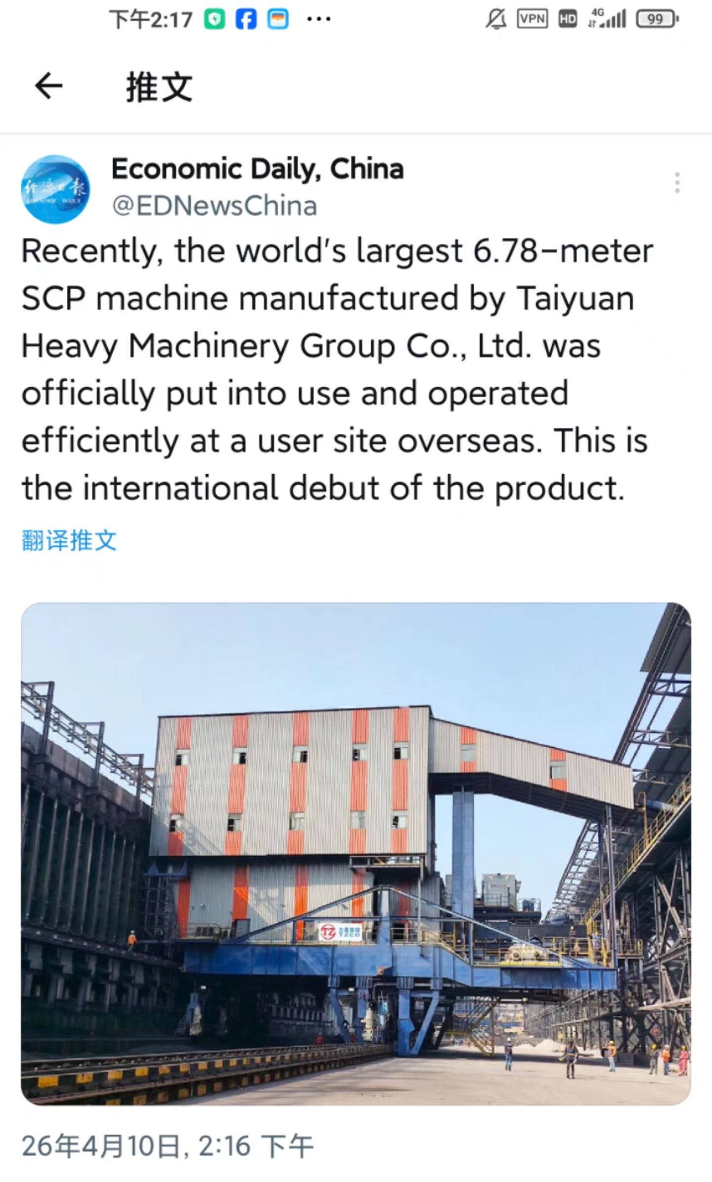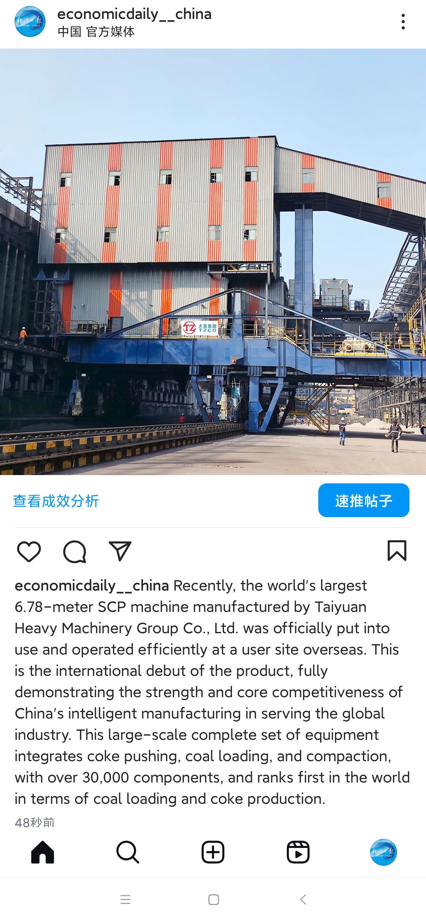 近日,擁有千萬粉絲的經(jīng)濟(jì)日?qǐng)?bào)海外媒體矩陣關(guān)注太重焦?fàn)t設(shè)備。這一消息通過其Facebook、X、Instagram全平臺(tái)同步發(fā)布,向世界展示“太重智造”的硬核實(shí)力。