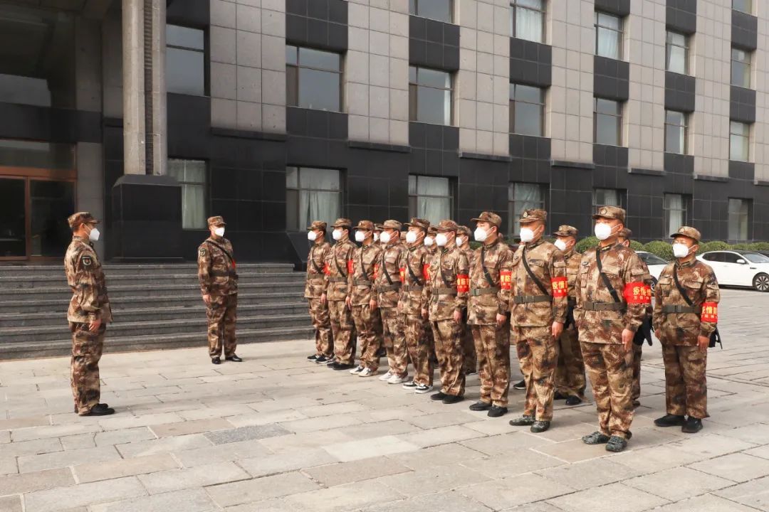 11月24日9點(diǎn)20分,集團(tuán)公司接到萬柏林區(qū)人民武裝部電話通知,需緊急抽調(diào)二十名民兵骨干組成防疫小分隊(duì)支援萬柏林區(qū)疫情防控工作。僅用一個(gè)小時(shí),一支由退伍軍人、業(yè)務(wù)骨干組成的民兵精銳身著迷彩、整齊劃一,在集團(tuán)公司科技大樓前集結(jié)完畢。
