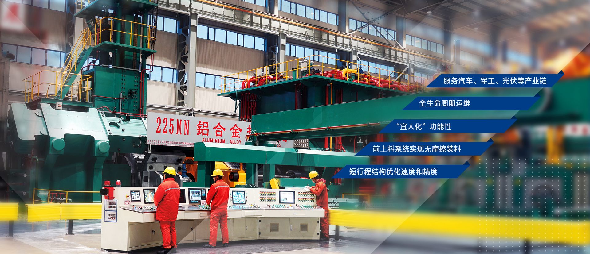 公司可為有色金屬擠壓、鍛造成型領(lǐng)域提供高效智能的整體解決方案,致力于汽車輕量化、軍工、光伏等產(chǎn)業(yè)鏈內(nèi)加工設(shè)備的全生命周期運維,升級服務(wù)。