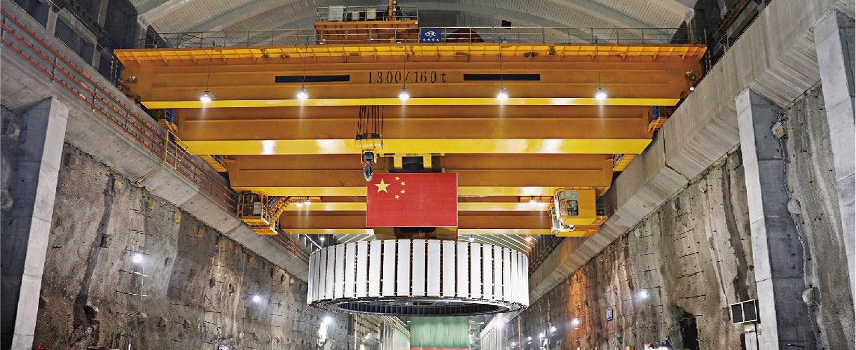 2021年6月28日,太重集團生產(chǎn)制造的1300噸橋式起重機,順利完成了三峽白鶴灘水電站全球首臺百萬千瓦水電機組吊裝任務。